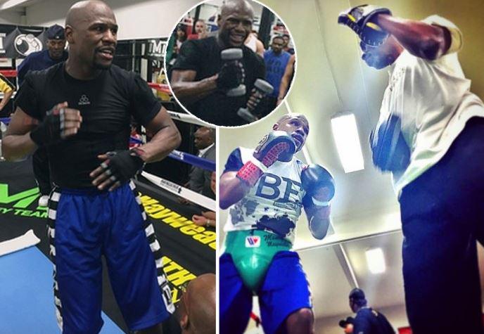 Not one to keep his head down, Pretty Boy shared a number of images from his first session on social media website Shots. This includes photos of him lifting weights and sparring in front of an interested crowd, tweeted by MailOnline Sport:
